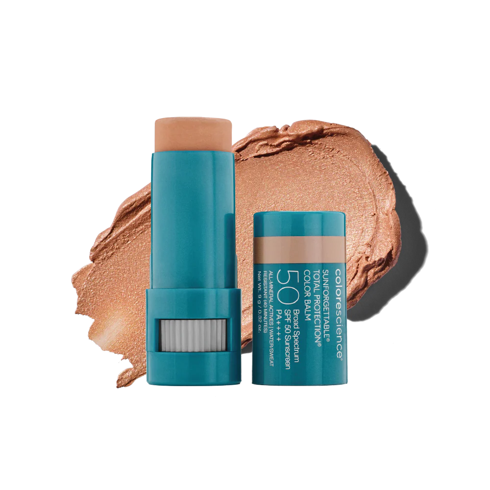 Luce una piel luminosa y protegida con SUNFORGETTABLE® TOTAL PROTECTION COLOR BALM SPF 50, bálsamo de color con FPS 50 que combina tratamiento, protección y maquillaje en un solo producto. Su formato de 9 gr permite aplicarlo cómodamente en mejillas, ojos y labios, ofreciendo versatilidad y practicidad en cualquier momento del día.